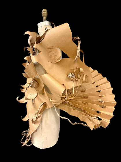 Wave is a deeply personal exploration of emotional balance, inspired by a jade bracelet my father gave me when I was young. This bracelet has been a source of comfort throughout my life, symbolizing serenity and reassurance—qualities I sought to translate into the design through fabric. I made the piece primarily from recycled materials, which reflects the natural cycles that jade represents and aligns with my commitment to sustainability.